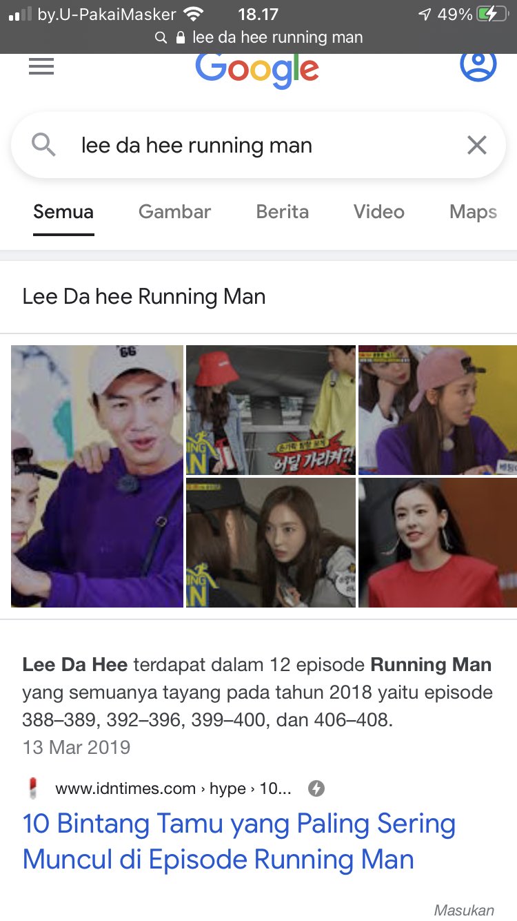 SBS SEOUL - Olimpiade Tokyo 2020 resmi mulai digelar hari ini. Program televisi yang memuat ratusan episode ini sudah mengudara di stasiun televisi Korsel SBS selama lebih dari satu dekade. Lee Da Hee terdapat dalam 12 episode Running Man yang semuanya tayang pada tahun 2018 yaitu episode 388389 392396 399400 dan 406408.