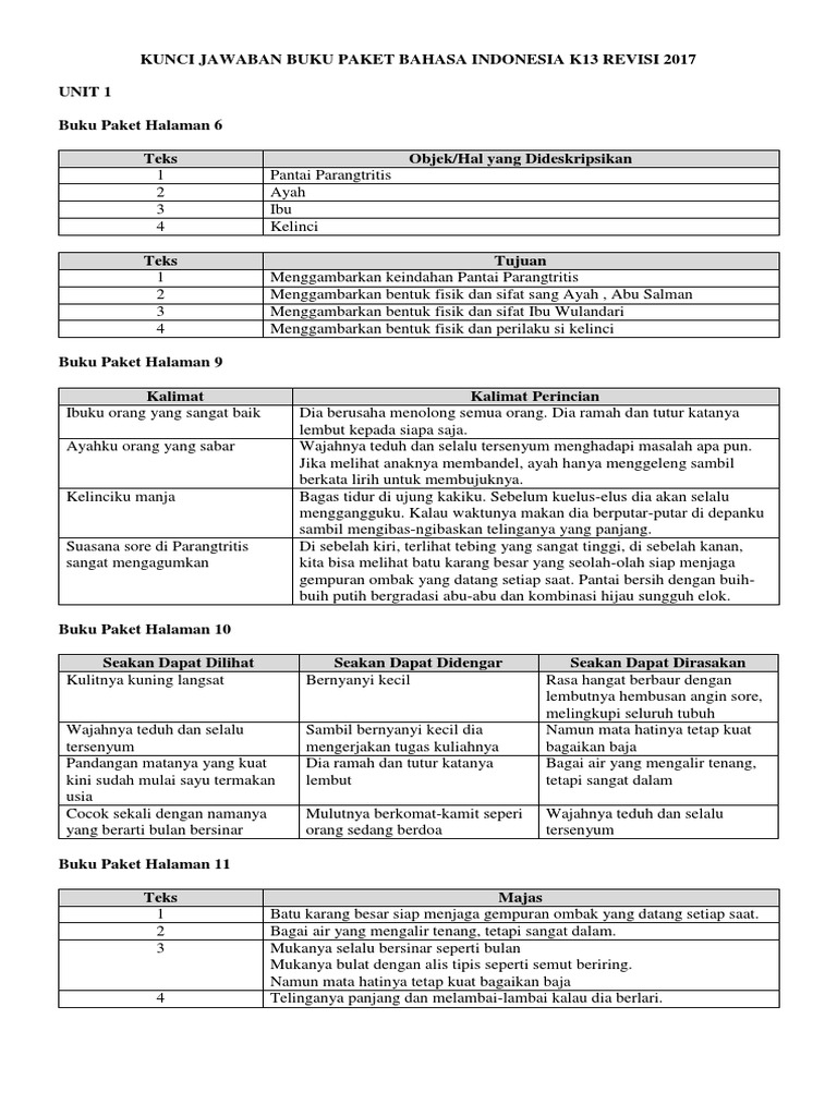 Kunci Jawaban Bahasa Indonesia Kelas 7 Halaman 10 11 Teks Deskripsi Wali Kelas Sd