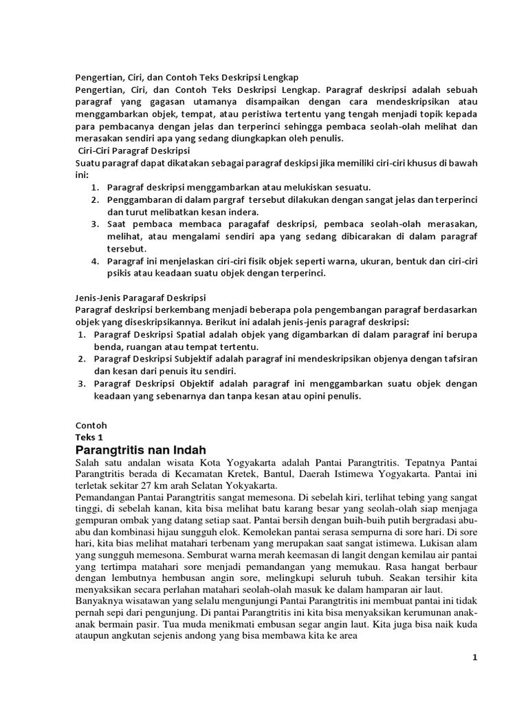 Rincian Objek Teks Deskripsi Pantai Parangtritis Nan Indah Adalah - Teks deskripsi di atas termasuk jenis teks. TEKS DESKRIPSI Membangun Konteks Berikut ini adalah beberapa contoh objek yang dapat diamati.