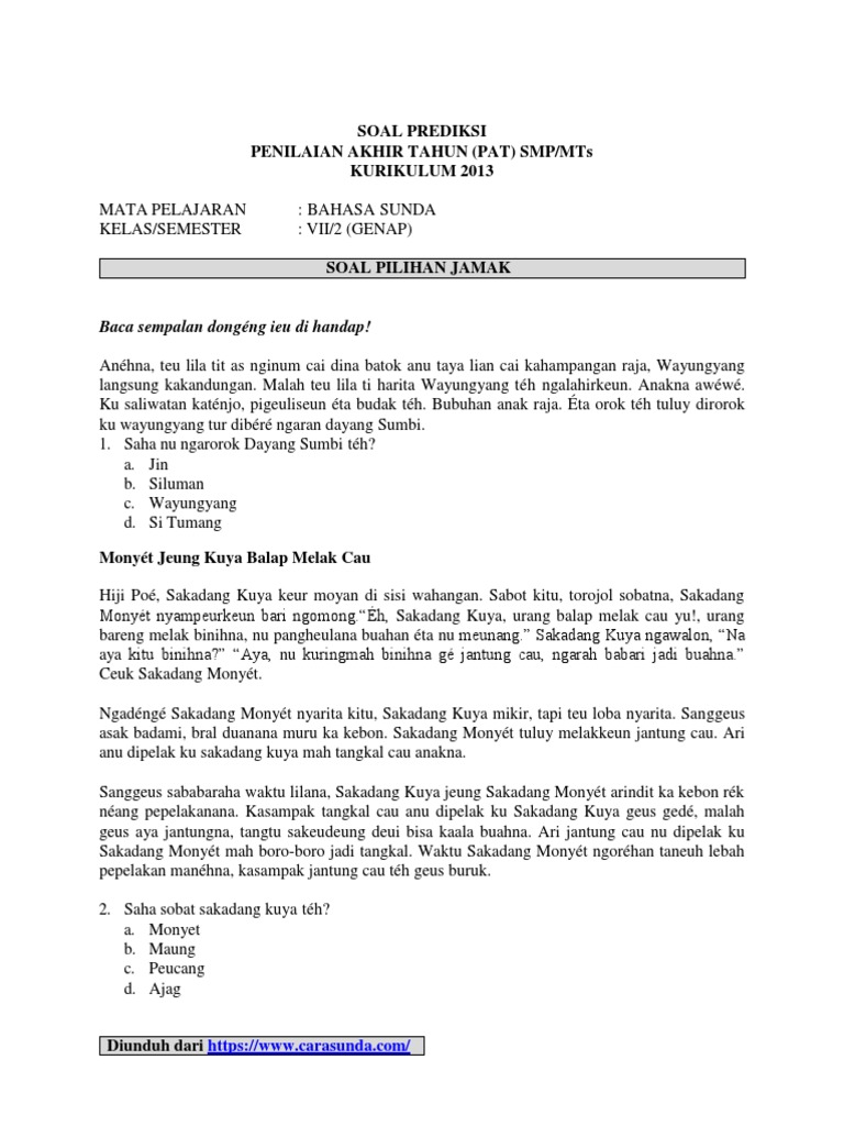 Soal Dan Kunci Jawaban Pat Bahasa Sunda Kelas 7 Kurikulum 2013 Soal Pelajaran