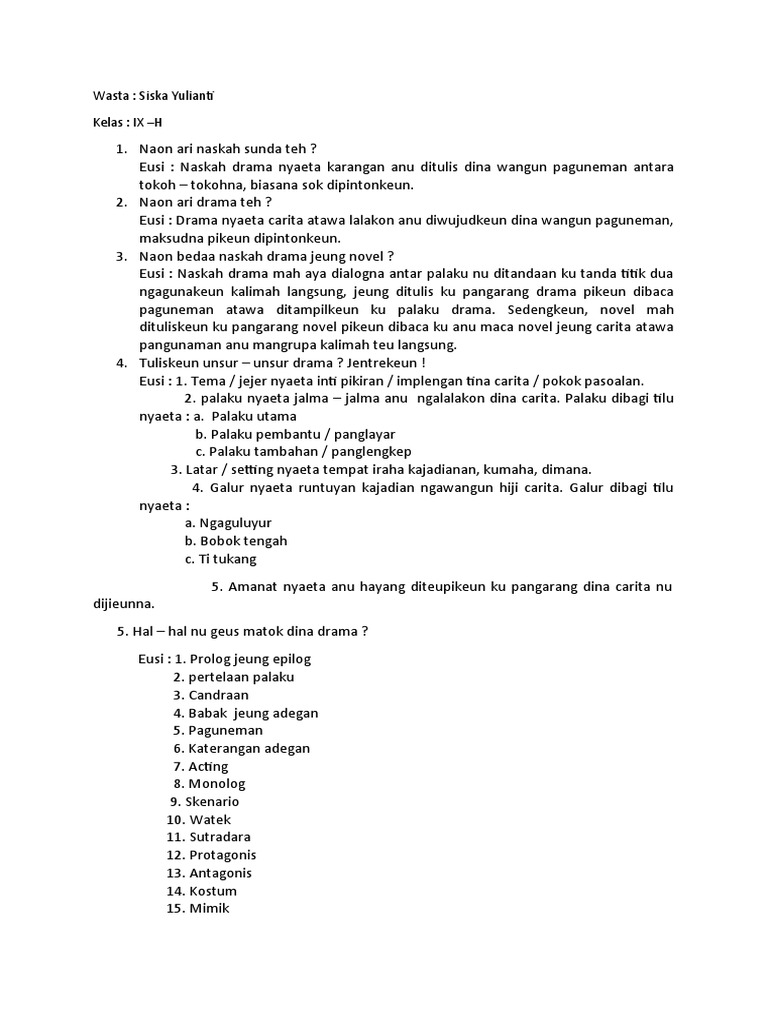 Soal Prediksi PTS Bahasa Sunda SMPMTs Semester 2 Kurikulum 2013 Kelas 7 di handap ieu mangrupikeun soal Tes Pendalaman Materi TPM anu disusun ku Tim Guru Bahasa Sunda SMP Darussalam. Kasangtukang latarsetting Latar atawa setting nyaeta Patempatan waktu. Watek tokoh dina novel ieu nyaeta.
