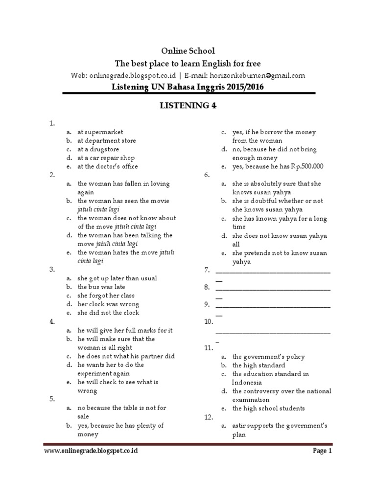 Latihan Soal Listening Un Bahasa Inggris Sma 2016 Paja Tapuih